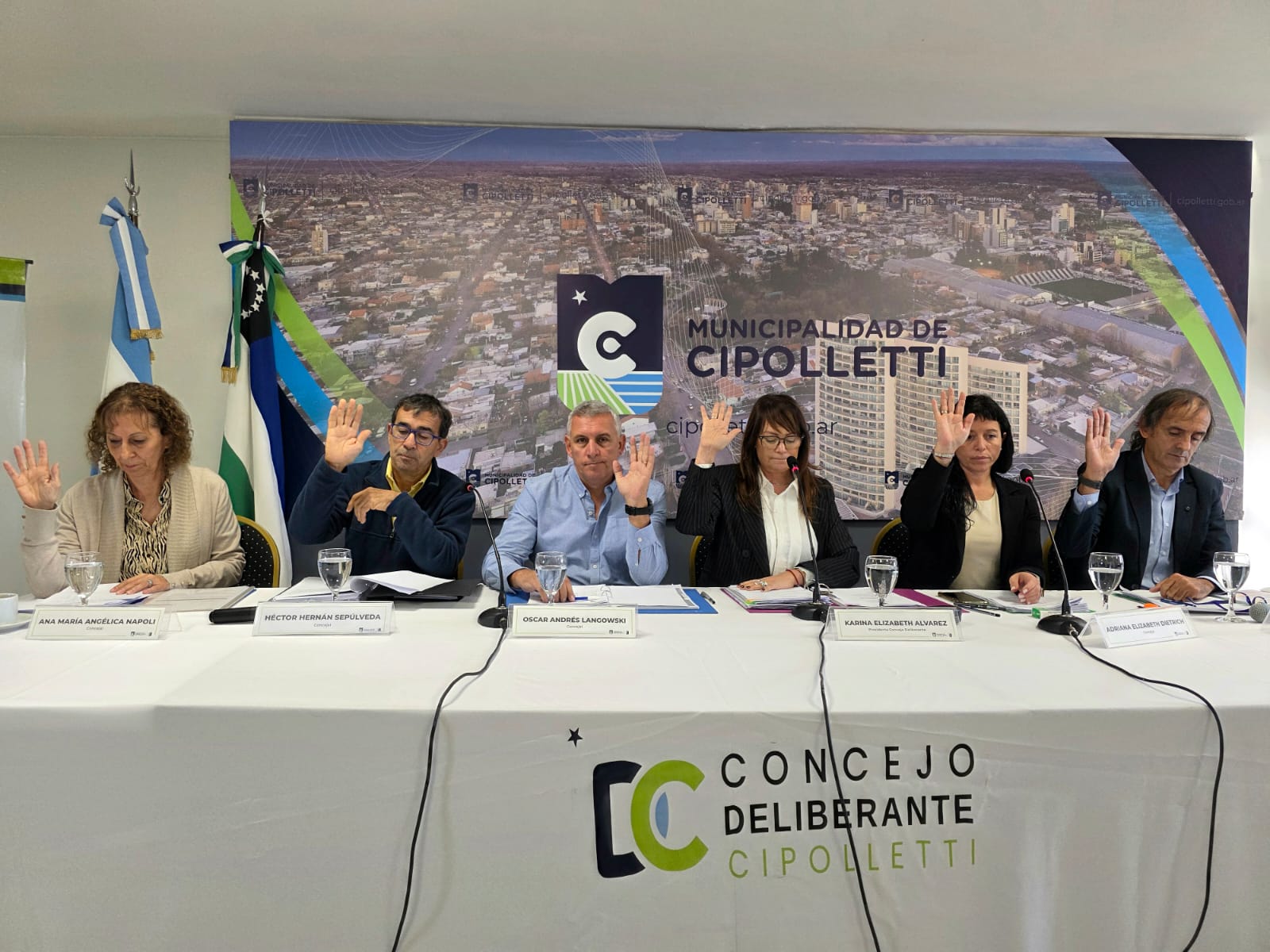Este jueves 23 de abril el Concejo Deliberante de Cipolletti llevó adelante la Sesión Ordinaria N° 1041, la misma estuvo presidida por la Presidenta Karina Alvarez en compañía de los concejales Martín Posse y Adriana Dietrich (Juntos Somos Río Negro), Héctor Hernán Sepúlveda y Ana María Napoli (Cambia Cipolletti) y Oscar Langowski (Coalición Cívica ARI).